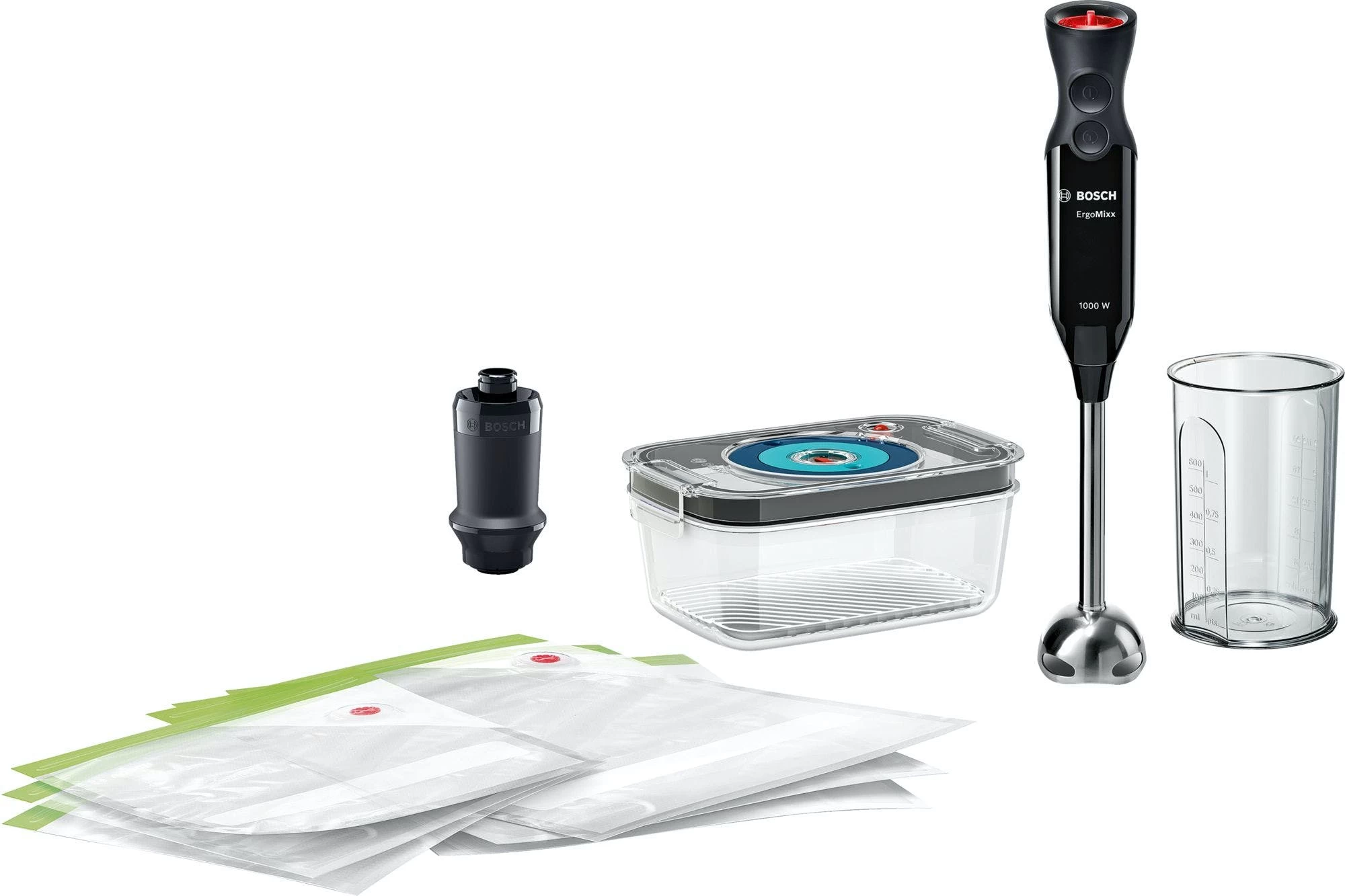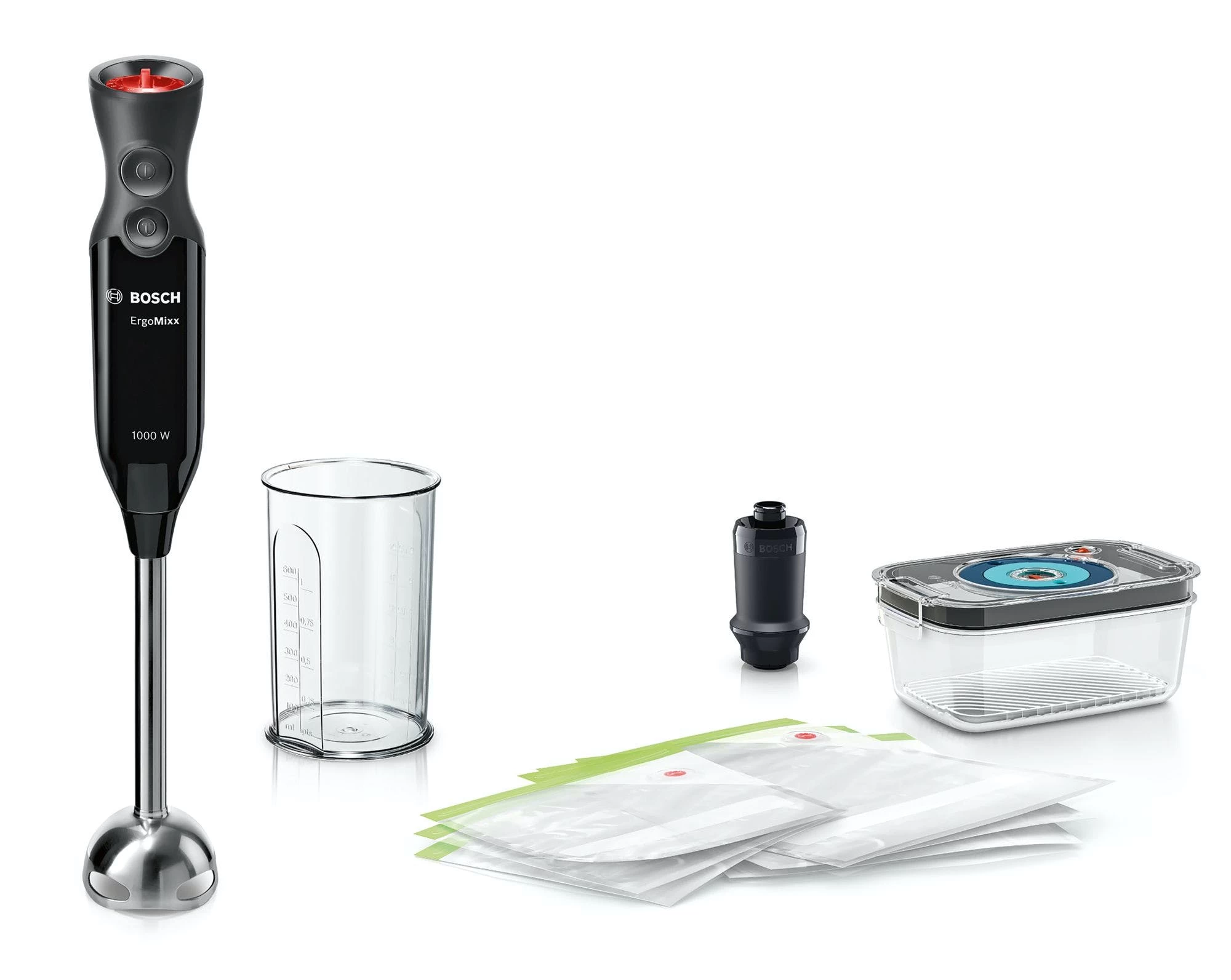 Bosch MS6CB61V1. Schüsselkapazität: 0,6 l. Typ: Pürierstab, Produktfarbe: Schwarz, Kabellänge: 1,4 m. Leistung: 1000 W, AC Eingangsspannung: 220-240 V, AC Eingangsfrequenz: 50/60 Hz. Breite: 62 mm, Tiefe: 55 mm, Höhe: 393 mm