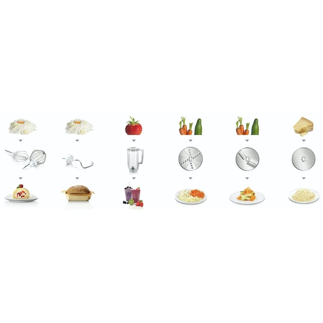 Bosch MUM58020. Schüsselkapazität: 3,9 l, Produktfarbe: Weiß, Steuerung: Tasten. Schüsselmaterial: Kunststoff, Messermaterial: Edelstahl. Leistung: 1000 W, AC Eingangsspannung: 220-240 V, AC Eingangsfrequenz: 50 – 60 Hz. Breite: 282 mm, Tiefe: 271 mm, Höhe: 280 mm
