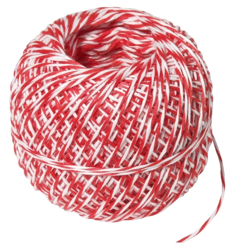Wurstgarn , rot-weiß gefärbt, aus Naturfasern, lebensmittelecht, zum Bündeln, Dressieren und Abbinden von Speisen