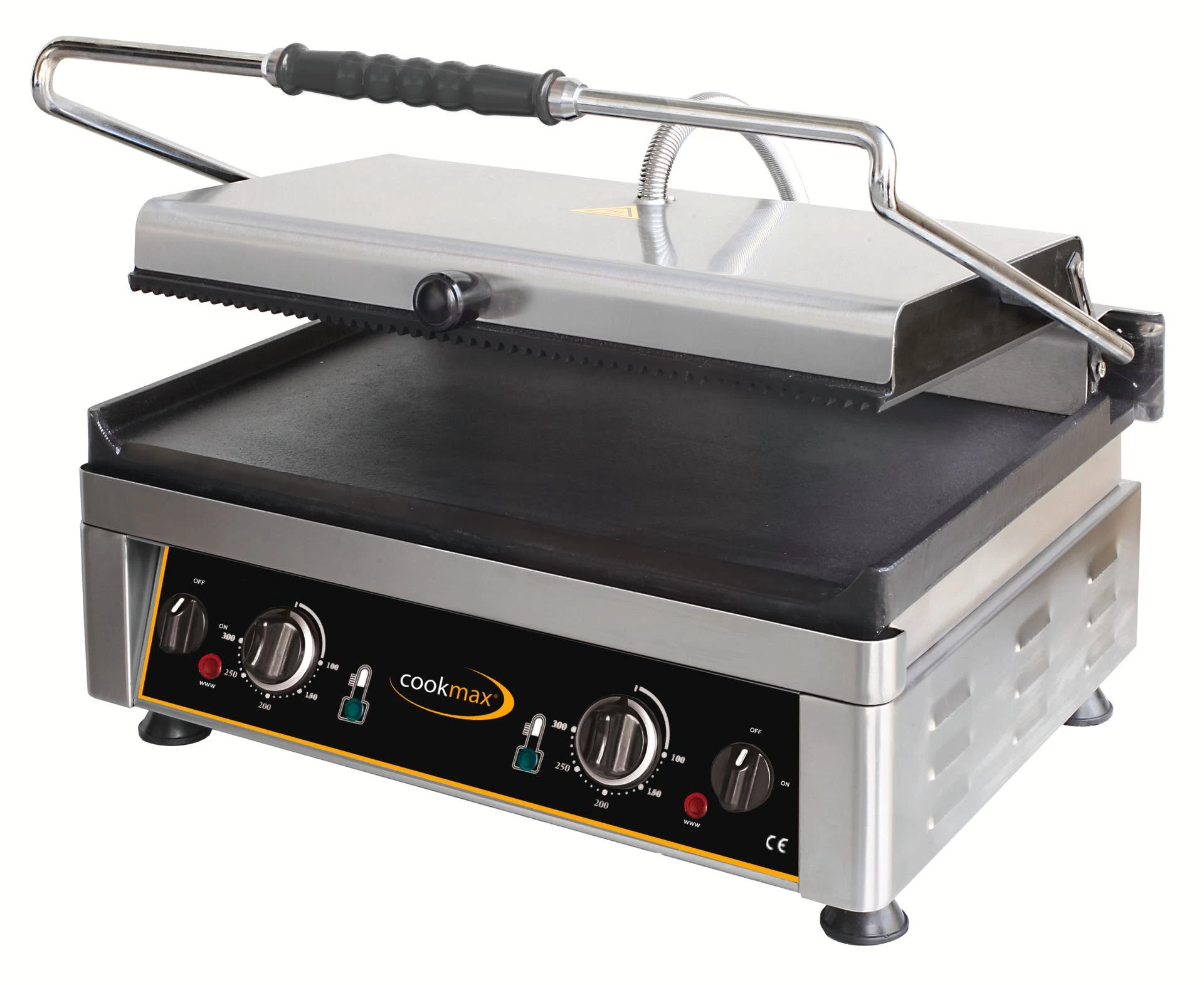 > Grillfläche 450 x 270 mm > Edelstahlkorpus, Guss-Grillfläche > Temperatur stufenlos bis 300°C > mit Fettauffangschale, Kontrollleuchte > Ein- / Ausschalter > Ober- und Unterhitze getrennt regelbar