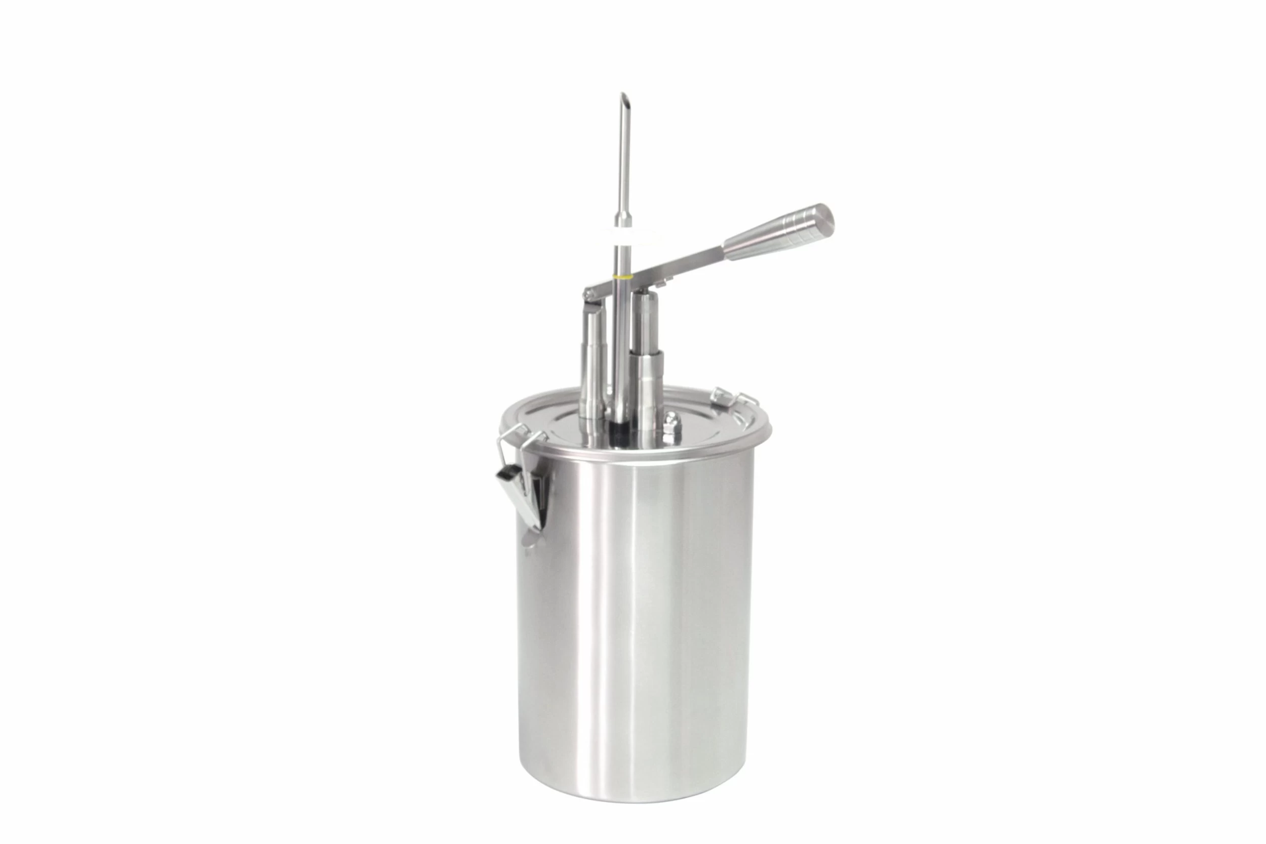Füllkolben und Schüssel aus EdelstahlDosiermenge regulierbar: 0 – 15 gJedes Bauteil ist einfach zu reinigen.Inklusive 2 Deckel.nicht für Nuss-Nougat-Creme geeignet