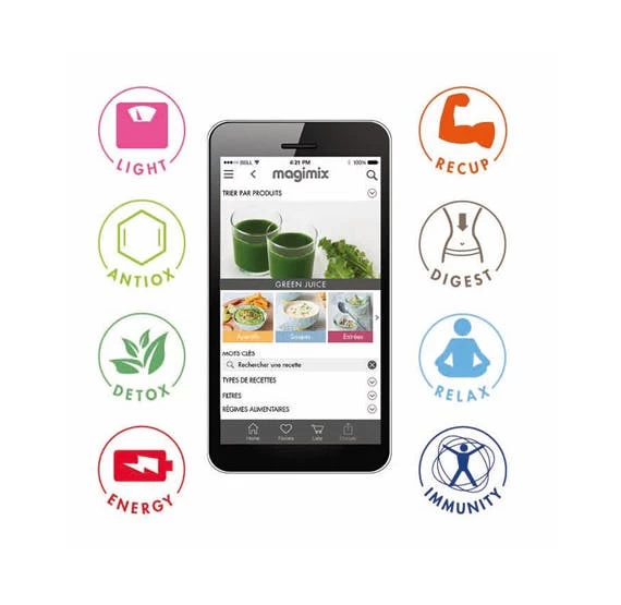 Magimix 18080 F. Produkttyp: Entsafter, Produktfarbe: Weiß. Leistung: 400 W. Breite: 183 mm, Tiefe: 214 mm, Höhe: 415 mm
