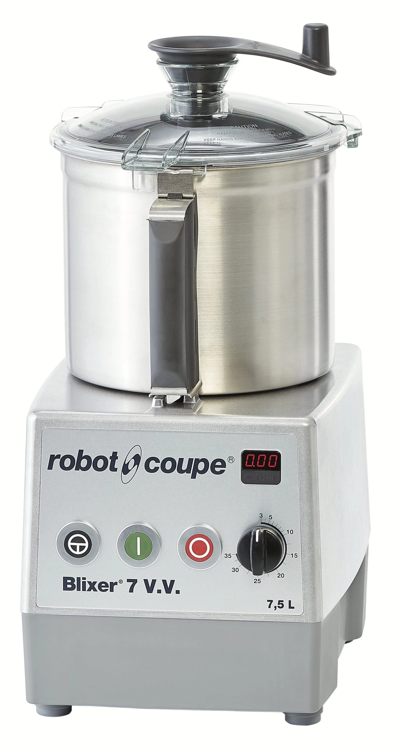 Blixer 4 V.V. Einphasig 230V/50/1. Leistung 1100 W. Drehzahlregelung 300 bis 3500 U/min. 4,5-Liter-Schüssel aus Edelstahl mit Griff und tief liegendem Messer mit 2 gekerbten Klingen. Dichter Deckel mit Abstreifer. 2 bis 15 200-g-Portionen