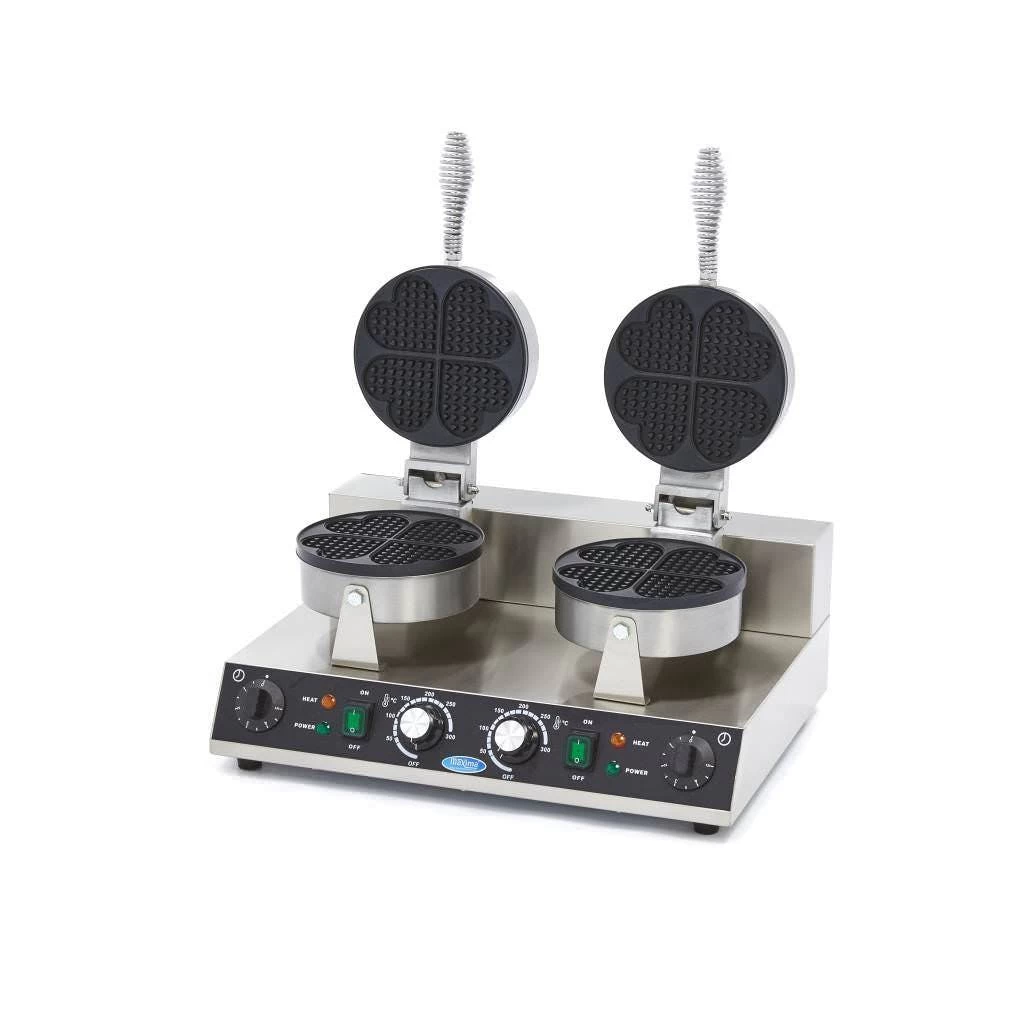Die köstlichsten Waffeln sind selbst gemacht, direkt in Ihrer eigenen Küche. Mit diesem professionellen Waffeleisen können Sie die köstlichsten herzförmigen Waffeln herstellen. Mit diesem doppelten Waffeleisen können Sie perfekte Waffeln auf dem Markt oder Jahrmarkt, aber auch in einem Restaurant oder Café zubereiten. Servieren Sie herzförmige Waffeln zum Beispiel zu einem Dessert. Da die Zeit in einer professionellen Küche kostbar ist, können Sie mit diesem Gerät schnell und einfach die perfekte Waffel zubereiten.